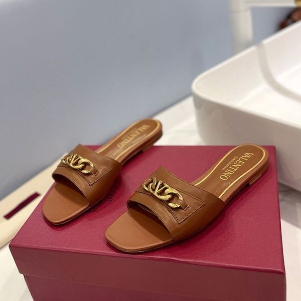 Slajdy z łańcuchem Valentino VLogo Damskie ze skóry cielęcej w kolorze brązowo-brązowy Slajdy z łańcuchem Valentino VLogo.-Skóra bydlęca.-Złote okucia z akcentem w postaci łańcucha Vlogo.-Skórzana podeszwa z logo Valentino Garavani wytłoczonym.-Wysokość obcasa: 0,5 cm-Damski rozmiar: EU 35, EU 36 EU 37, EU 38 EU 39, EU 40, EU 41, EU 42.