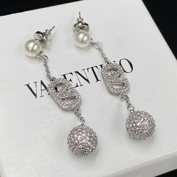 Oryginalne kolczyki-łańcuszki Valentino Small VLogo z metalu z pereł i kryształowymi kulkami Srebro -Srebrne oryginalne kolczyki Valentino VLogo.-Metal.-Perły.-Влог z kryształami Swarovskiego.-Kulki z kryształami Swarovskiego.-Zapięcie-Motyl.
