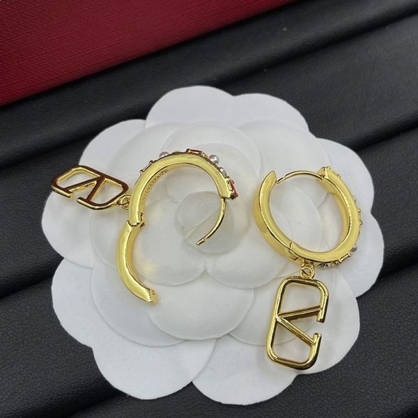 Markowe kolczyki szpilki Valentino VLogo z metalu Z perłami i kryształami i złotą emalią - Złota oryginalne kolczyki Valentino VLogo.-Metal.-Perły, kryształy i emalia.-Zawieszenie VLogo.-Zapięcie-agrafka do przekłutych uszu.