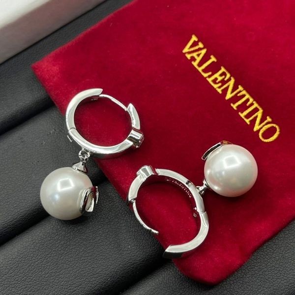 Markowe kolczyki szpilki Valentino VLogo z metalu ze szkłem i pereł w kolorze srebrnym - Srebrne oryginalne kolczyki Valentino VLogo.-Metal.-jeden kryształ.-Perłowa zawieszenie.-Szpilka do mocowania przekłutych uszu.