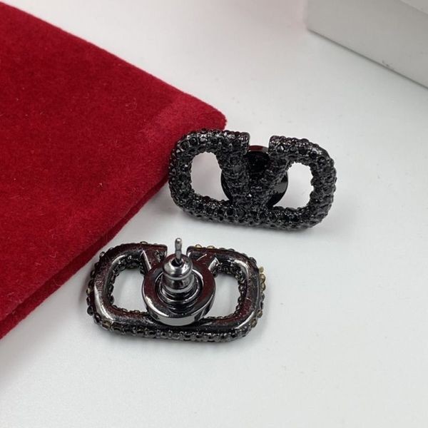 Oryginalne kolczyki Valentino Mini VLogo z metalu z kryształami w kolorze czarnym -Czarne markowe kolczyki Valentino VLogo. -Metal.-Влог z kryształami Swarovskiego.-Zapięcie-motyl.-Rozmiar: 1,5 cm