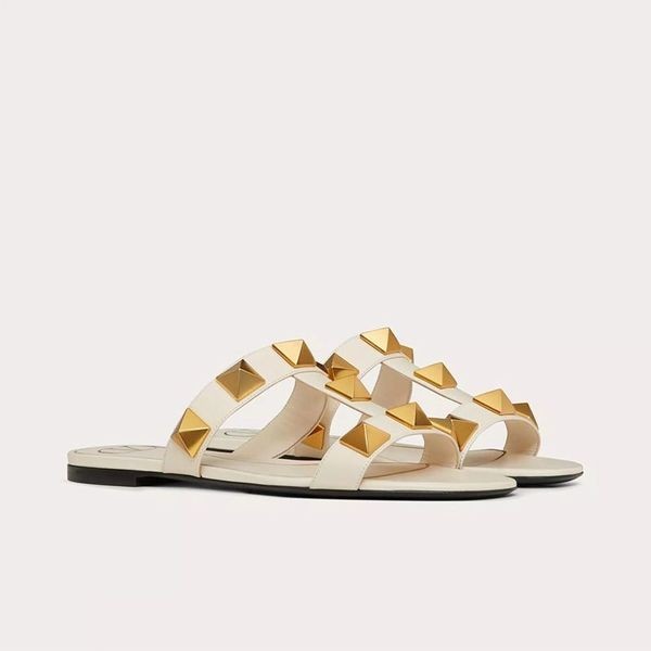 Damskie zjeżdżalnie-goździki Valentino Roman z cielęcej skóry w kolorze białym -Białe slajdy-goździki Valentino Roman.-Skóra bydlęca. -Nity Maxi z wykończeniem z antykami z mosiądzu.-Wysokość obcasa: 0,5 cm-Damski rozmiar: EU 34 EU 35, EU 36 EU 37, EU 38 EU 39, EU 40.