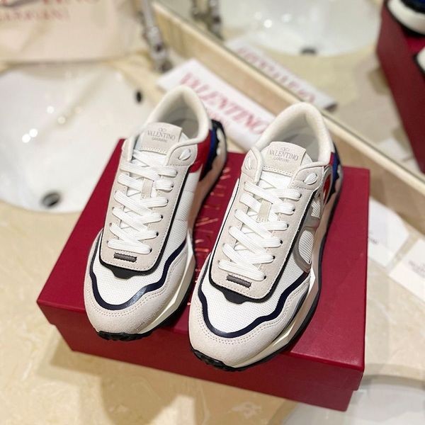 Valentino Netrunner Tênis Com Vlogo Unissex, Laço De Camurça E Branco