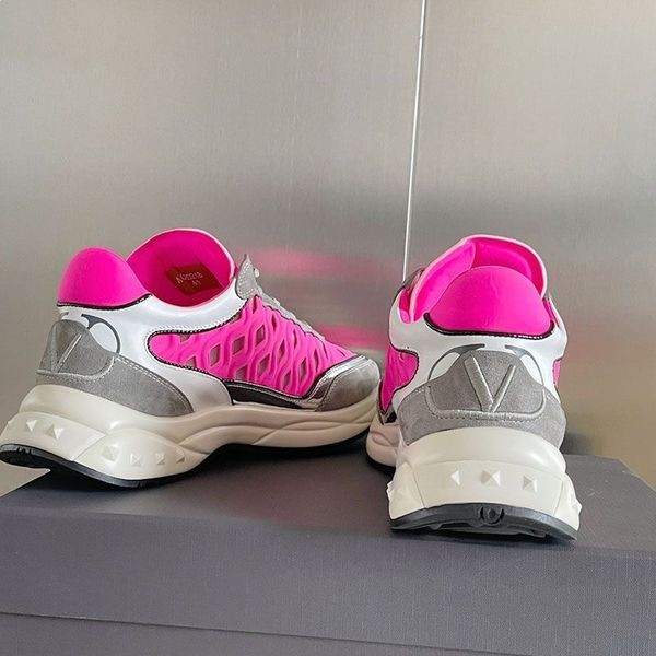 Valentino Pronto Vá Corredor Tênis Com VLogo Unissex, Tecido e Couro Rosa