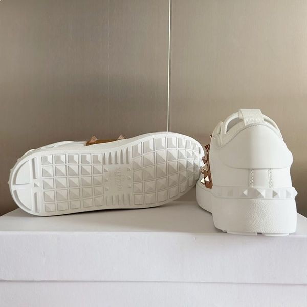 Valentino Rockstud Sem Título Tênis Unissex Bezerro Branco/Ouro