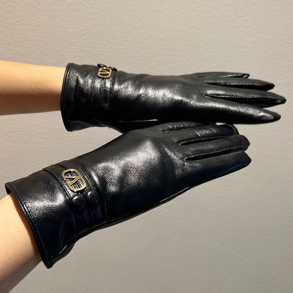Valentino VLogo Assinatura De Luvas Com Duas Tiras De Mulheres De Pele De Carneiro Preto