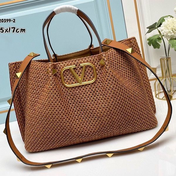 Valentino Mediu VLogo Semnătura Geantă De Cumpărături Cu Roman Știfturi Sintetice Riffia Maro