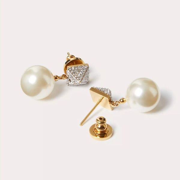 Valentino Mini Rockstud Cercei Din Metal si Cristale Swarovski si Perle de Aur