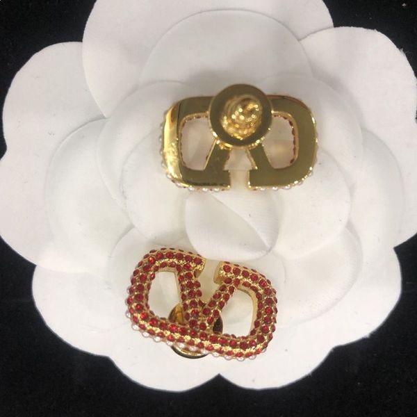 Valentino Mini VLogo Semnătura Stud Cercei Din Metal Cu Cristale De Aur/Roșu