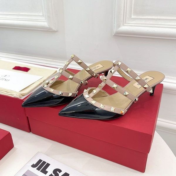 Valentino Rockstud Cu Toc Catâri Cu Bretele Pentru Femei Din Piele De Brevet Negru