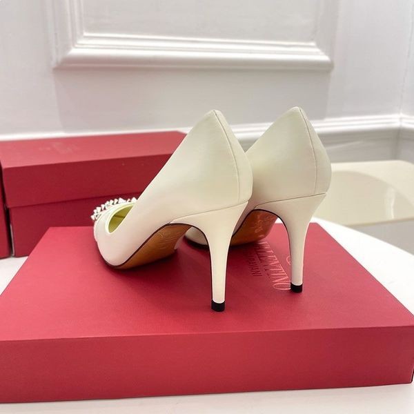 - Valentino Rockstud Pompe Cu Împânzit Toecap Femei Piele Netedă Alb