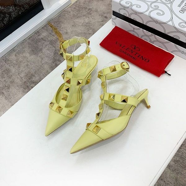 - Valentino Roman Stud Pompe Cu Bretele Pentru Femei Din Piele De Vițel De Lamaie
