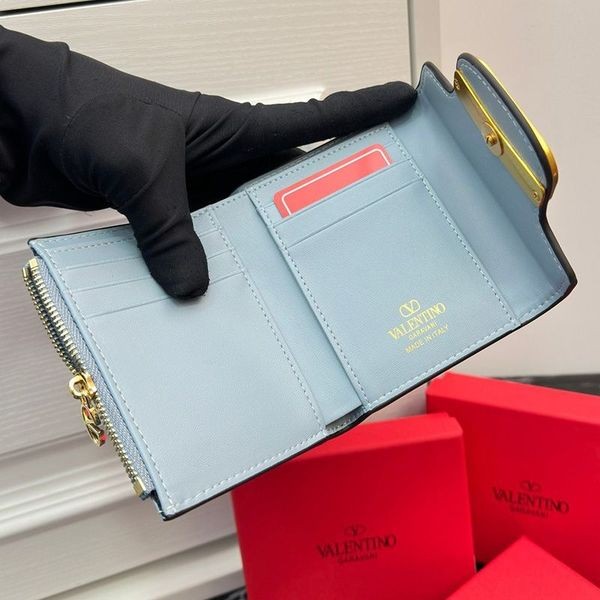 Valentinom Malé Alltime Trifold Peňaženky V Teľacina Sky Blue-Sky Blue Valentinom Alltime Trifold Peňaženky.-Teľacina.-Antique brass-dokončiť logo a hardvéru.-Modul-tlačidlo ukončenia.-Šesť sloty pre karty, jedna poznámka oddelení a jeden zips mince priestoru.-Veľkosť: 11 * 9 * 2 cm.