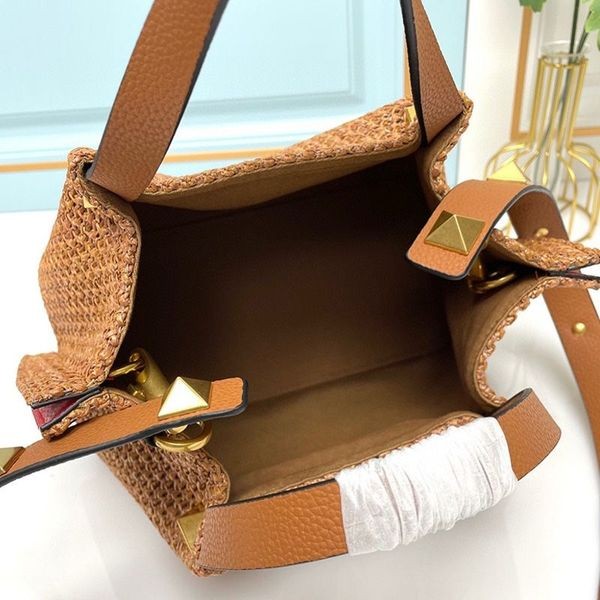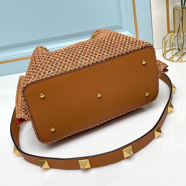 Ovocné Malé VLogo Podpis Nákupní Taška S Rímsko Klincami V Syntetické Riffia Hnedá