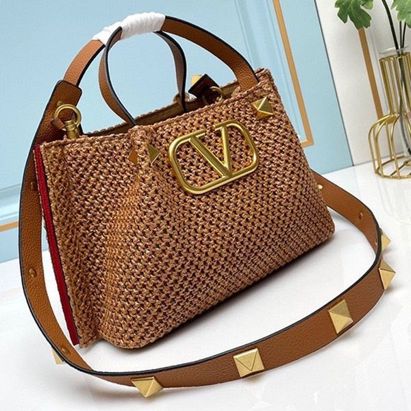 Valentinom Malé VLogo Podpis Nákupní Taška s Rímsko Klincami V Syntetické Riffia Hnedá-Brown Valentinom VLogo Podpis Nákupní Taška.-Syntetické Riffia.-Gombíky a kovové časti v antických-mosadz povrch.-Vymeniteľné ramenný kožený popruh.-Ochranné nohy.-Interiér: otvorte vrecku.-Veľkosť: W25 * H18 * D12 cm.
