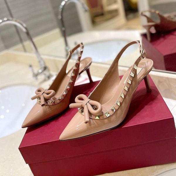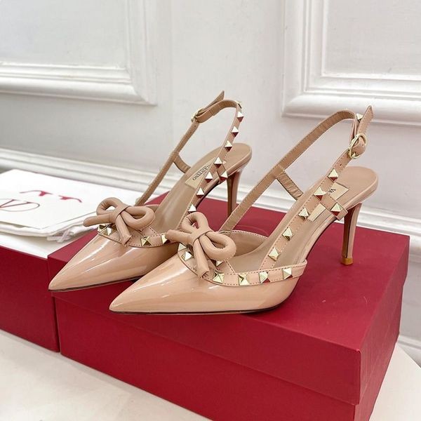 Ovocné Rockstud Luk Slingback Čerpadlá Ženy Lakovanej Kože Marhuľových
