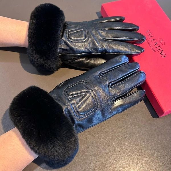 Ovocné Vlogo Plastický Rukavice Ženy Z Ovčej S Králik Kožušiny Čierna