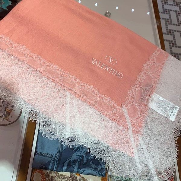 Valentinom VLogo Podpis Sacrf Ženy Cashmere s Čipkou Pink-Ružové s Valentinom VLogo Podpis Sacrf.-Cashmere, Čipky.-Ovocné Logo.-Šatka pre ženy-Size: 200 * 100 cm.