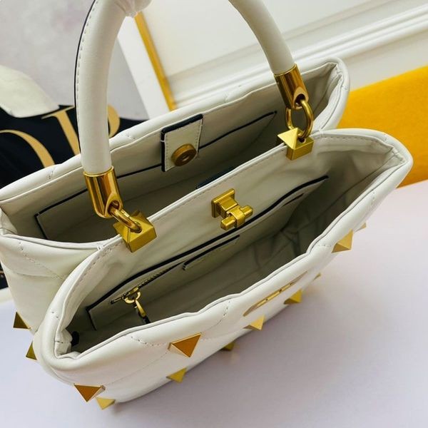 Valentino Meidum Romerska Stud Handväska I Nappa Läder-Vit-Vit Valentino, Valentino-Romerska Stud Handväska.-Fårskinn.-Quiltad konstruktion och prydd med maxi dubbar.-Antik mässing finish i metall dubbar och hårdvara.-Främre fack med twist-lock stängning.-Bakre fack med magnetlås.-Fårskinn.-Storlek: W28 * H22 * D17 cm.