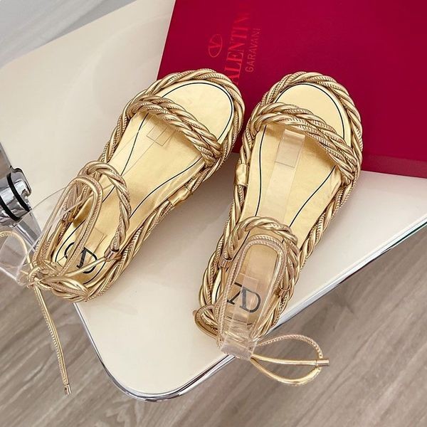 Valentino Repet Platta Sandaler Kvinnor Väva Kalvskinn Guld