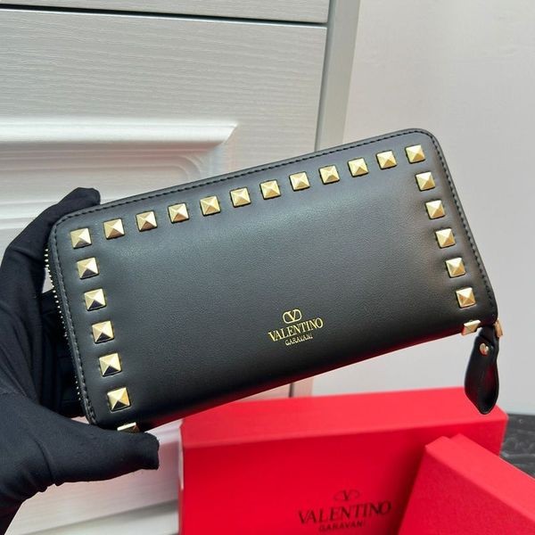 Valentino Stora Rockstud Blixtlåsförsedd Plånbok I Kalvskinn Svart