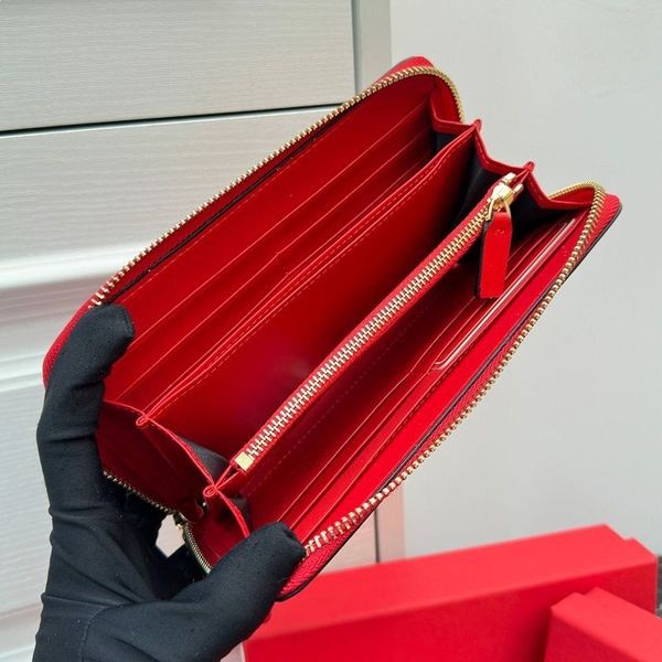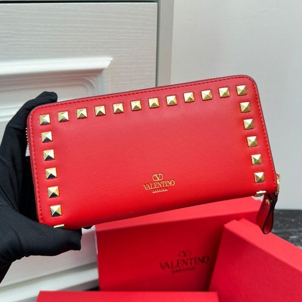 Dana Derisi Kırmızısı Valentino Büyük Rockstud Fermuarlı Cüzdan
