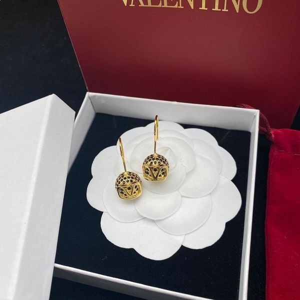 Valentino küçük VLogo imza kanca küpe elmas taklidi topları ile Metal altın