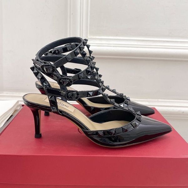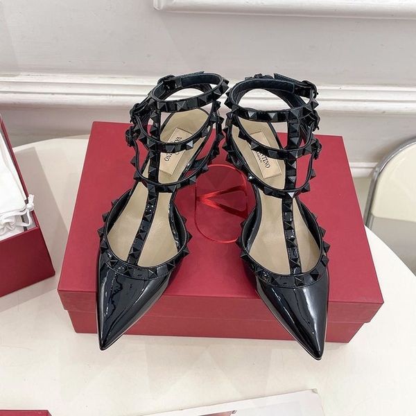 - Valentino Rockstud Kafesli Pompalar Kadın Rugan Siyah