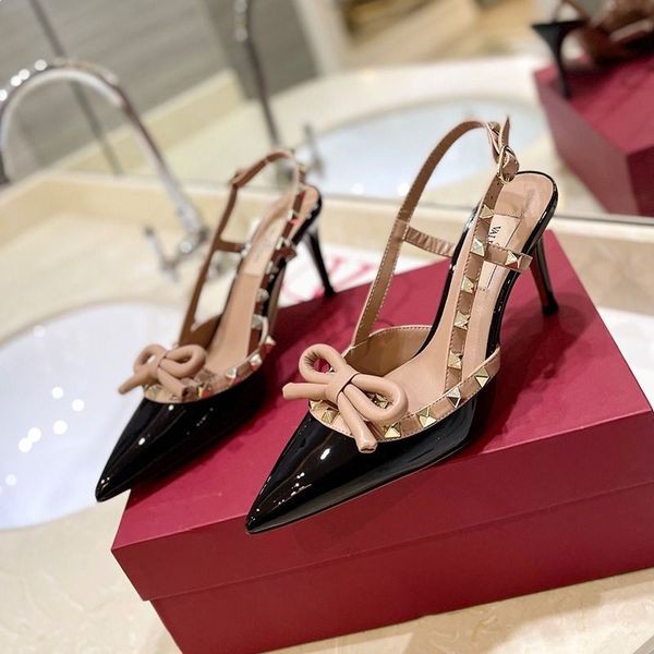 - Valentino Rockstud Yay Slingback Pompaları Kadın Rugan Siyah / Kayısı
